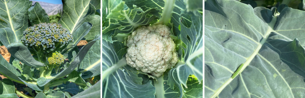 - Common Pests: These crops are highly susceptible to aphids, cabbage worms (the larvae of white cabbage moths, pictured on the right above), and flea beetles.