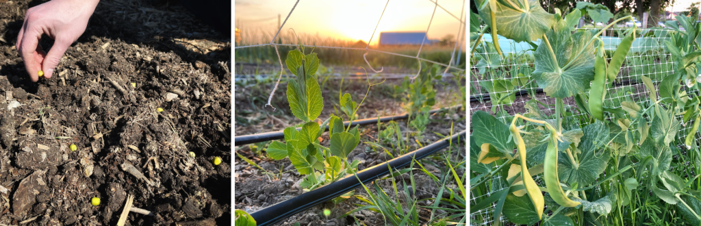 Peas are one of the first crops you can plant each spring because they germinate in cool temperatures and withstand light frosts. They are low-feeding, nitrogen-fixing plants that grow relatively quickly, often allowing you to harvest a full crop and replant the same space by late June.