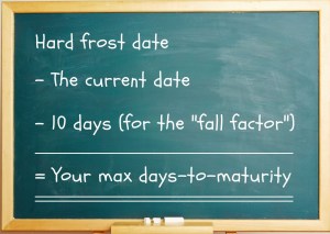 - The remaining number is the maximum “days-to-maturity” (per the seed pocket) that your selected crops can have.