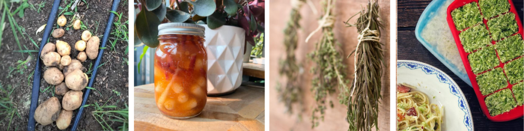 Food preservation is a useful way to prevent your harvest from going to waste, but it’s also a fantastic way to savour the summer harvest when it’s cold outside and you’re reminiscing about warmer days! Here’s a quick summary of some food preservation techniques that we enjoy doing at home. For simplicity, we’re assuming that you don’t have a cold room, so we’ll focus on storage options in your kitchen.